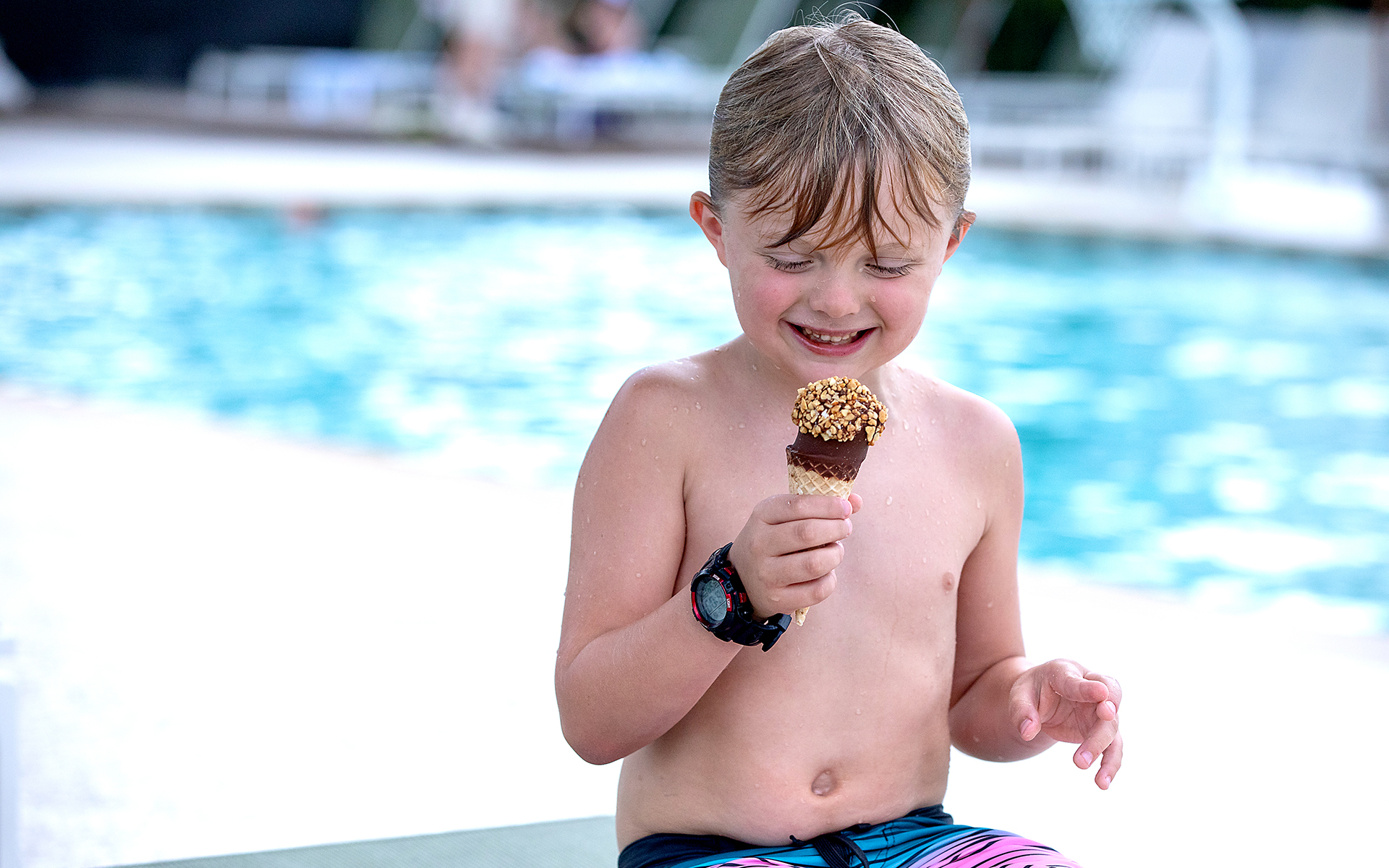 Our designated play area keeps families entertained. Challenge each other on the putting green, play cornhole, or have a giant Jenga or Connect Four showdown. Fun for all ages awaits poolside.